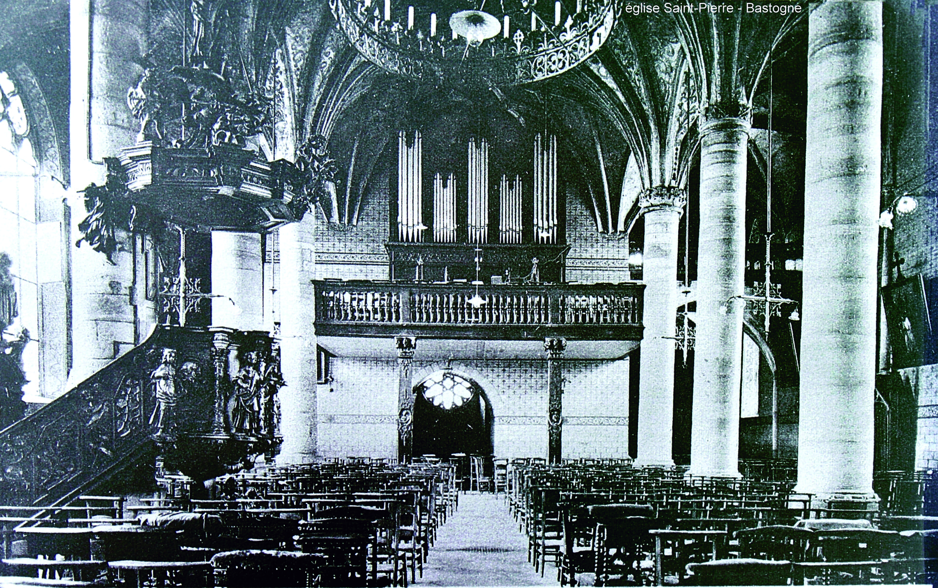Durant la Seconde Guerre mondiale, l’église Saint-Pierre a subi de lourds dégâts. Transformée en hôpital militaire pendant le siège de Bastogne, l’église apparait dans plusieurs scènes de la série Band of Brothers, de Steven Spielberg. Après la Bataille des Ardennes et l’offensive von Rundstedt de décembre 1944, la toiture était effondrée, les vitraux étaient soufflés et le patrimoine mobilier, ainsi que l’orgue, étaient détruits. Cela a entrainé une nouvelle campagne de restauration durant plusieurs années, suivie d’autres modifications tout au long du 20e siècle.