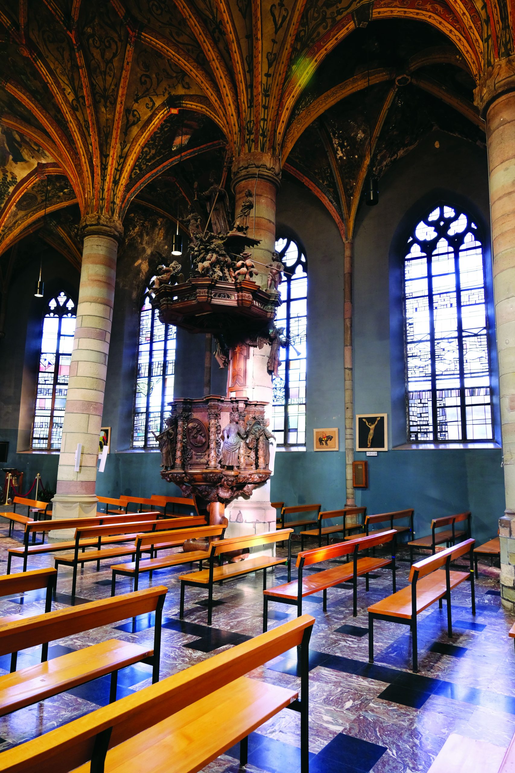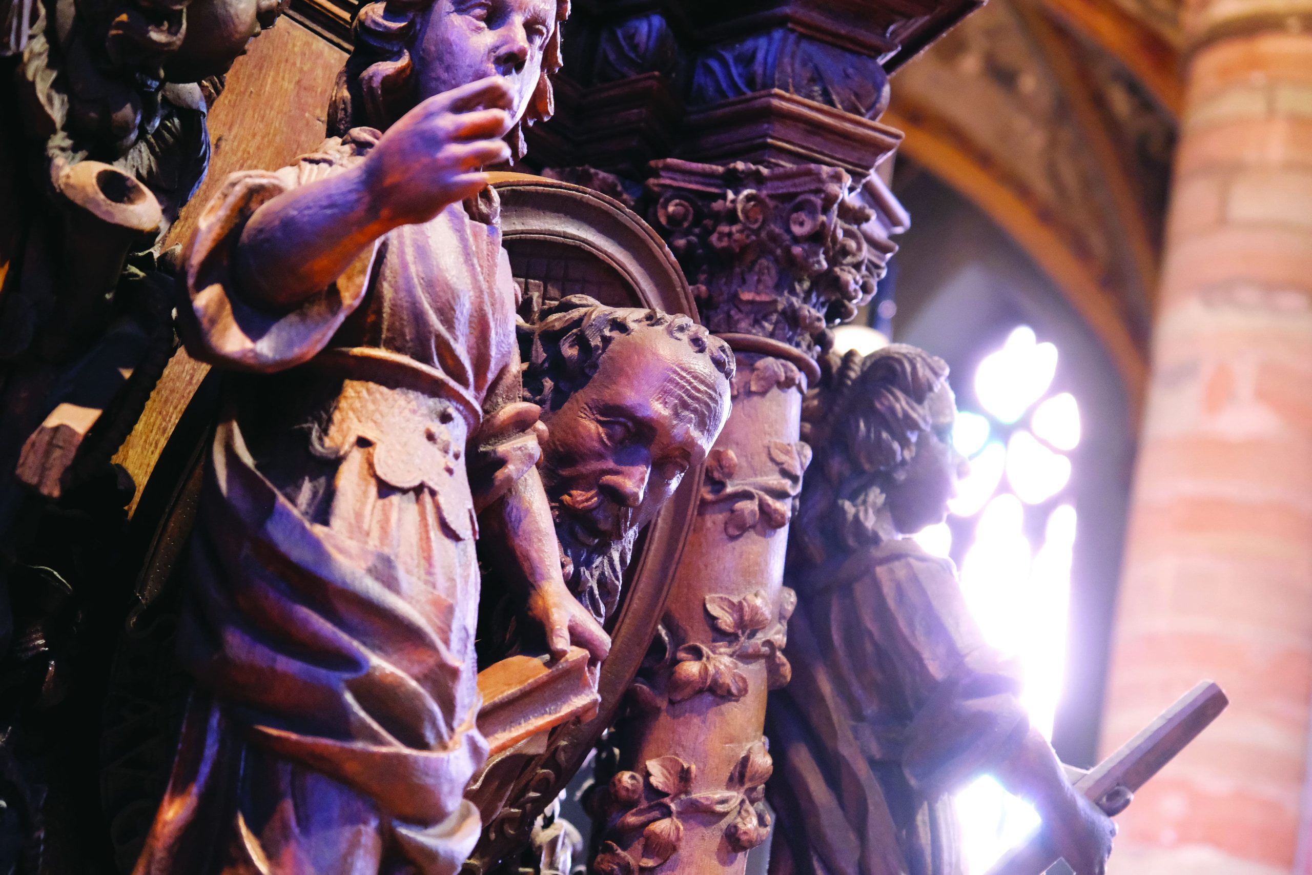 A pulpit is a kind of elevated desk from which the priest used to deliver his sermon. Today, the pulpit is very rarely used, as the service is celebrated from the choir. It is made up of three parts: the tank, the abat voce (a kind of small canopy) and the access staircase.