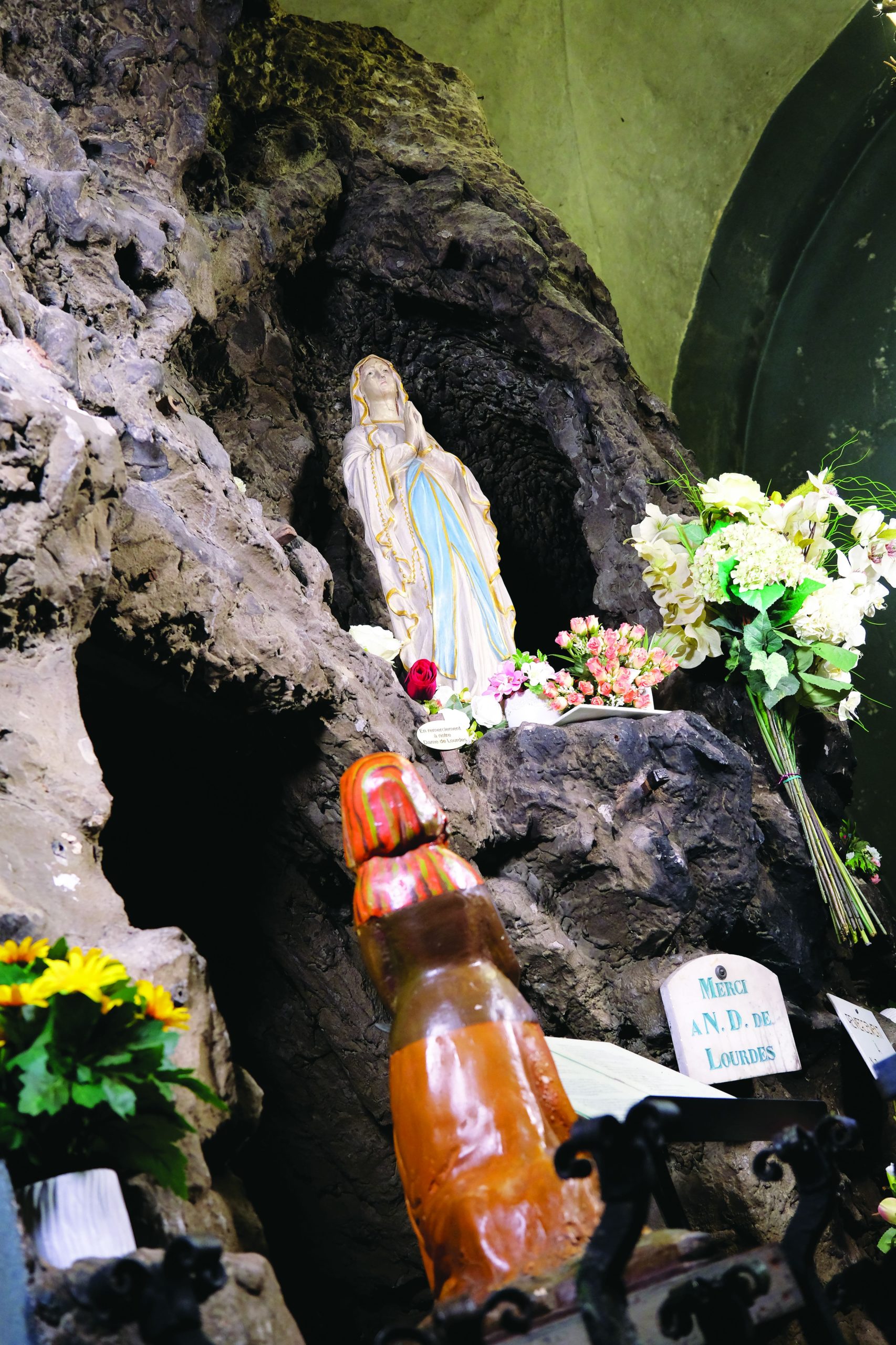 The Spais Trou, literally « thick hole », is the Walloon name given to the darkened area on the ground floor of the tower. It is a sort of shelter, and it could be used to take cover in case of peril. It could be accessed via a ladder and an opening in the vault. At the entrance to the Spais Trou there is now a grotto dedicated to Our Lady of Lourdes.