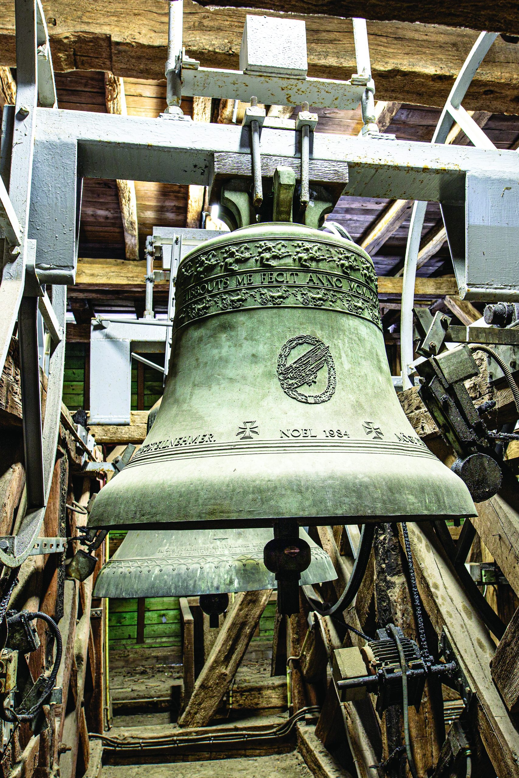 The three more recent bells were installed at Christmas in 1984, in memory of the siege of the town in December 1944. These bells were donated by the American veterans of the 101st Airborne Division, the German Fallschirmjäger (parachutists) and the Belgian veterans of Bastogne, as a pledge of peace and hope for future generations.